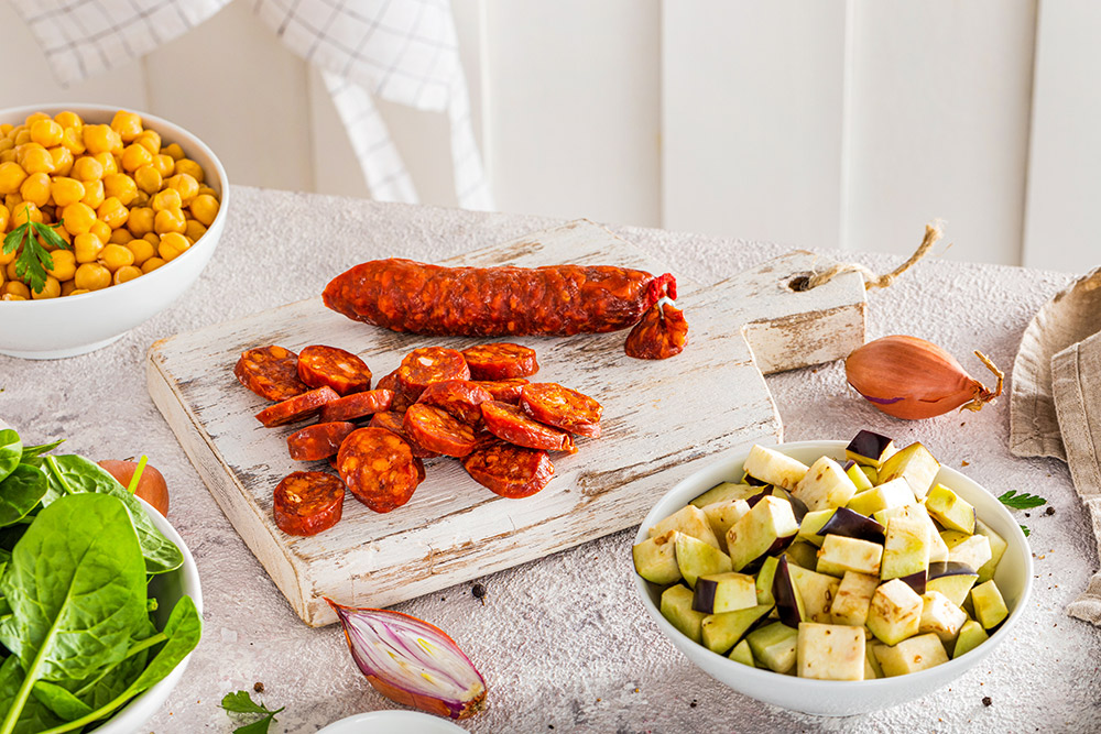 Gulasz z ciecierzycy i pikantnej kiełbasy