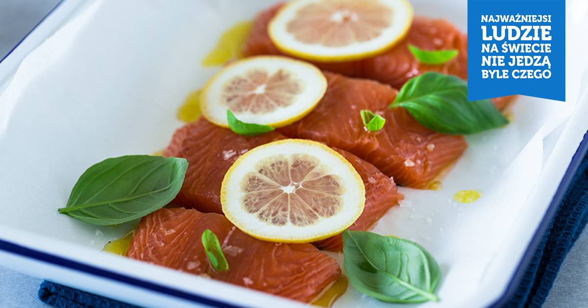 Łososia umyj, osusz, pokrój na porcje i dopraw solą i pieprzem. Blaszkę do pieczenia wyłóż papierem