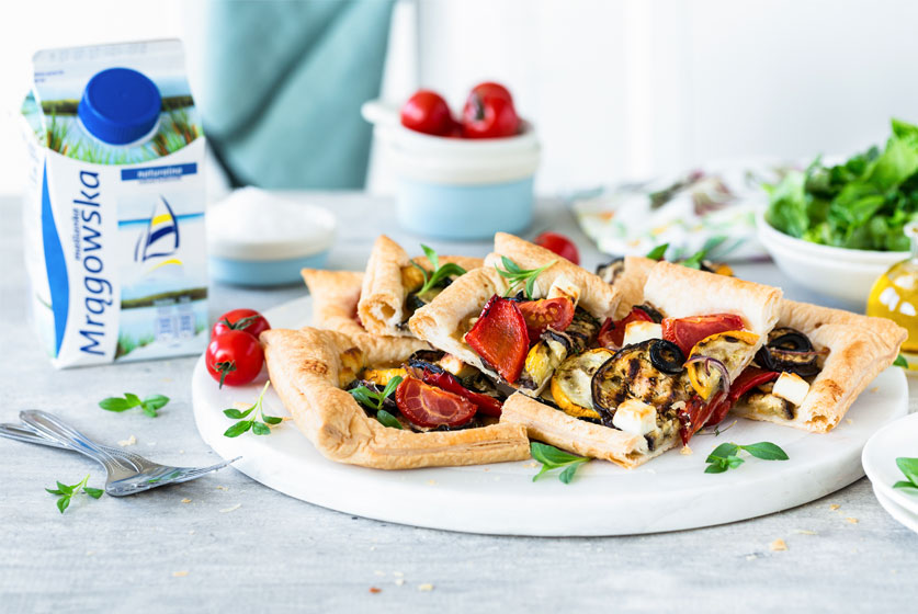 Tarta warzywna na spodzie z ciasta francuskiego to wyjątkowo proste, a jednocześnie efektowne danie, w którym wykorzystasz ulubione warzywa. Warto postawić na ich sezonowość, czyli czas w którym są najsmaczniejsze, pełne witamin oraz składników mineralnych. Ze względu na dużą
