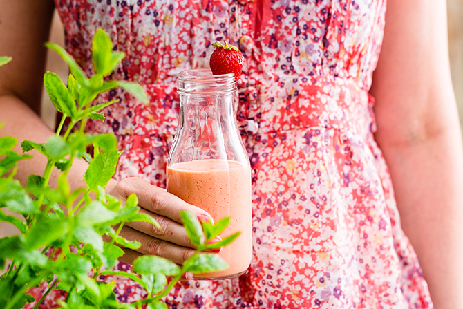 Marchewki obierz i pokrój w plasterki. Truskawki umyj i oderwij szypułki. Mango obierz i odkrój miąższ od pestki. Marchewki i Maślankę Mrągowską umieść w blenderze i zmiksuj. Następnie dodaj pozostałe składniki i jeszcze chwilę miksuj, by uzyskać jednolity koktajl.
