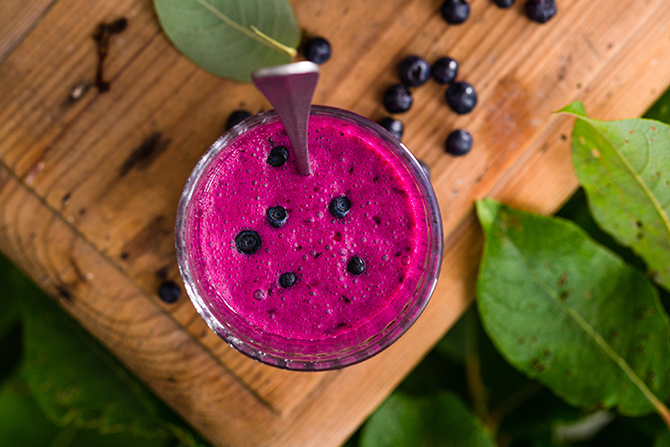 Owoce umyj, oderwij szypułki od truskawek. Buraka pokrój w kostkę. Wszystkie składniki umieść w blenderze i zmiksuj na gładki koktajl. Podawaj od razu po zrobieniu.