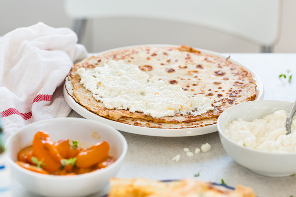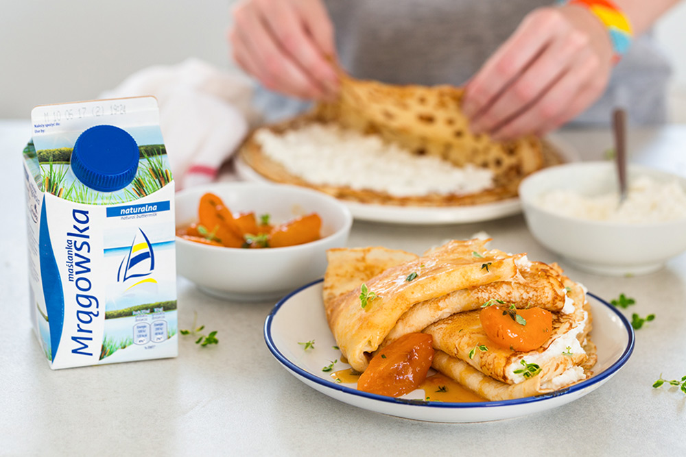 Mąkę przesiej do miski, dodaj masło, cukier i sól. Następnie wbij jajka i wlej maślankę. Całość zmiksuj na gładkie ciasto. Patelnię do naleśników rozgrzej, lekko posmaruj olejem i usmaż naleśniki.